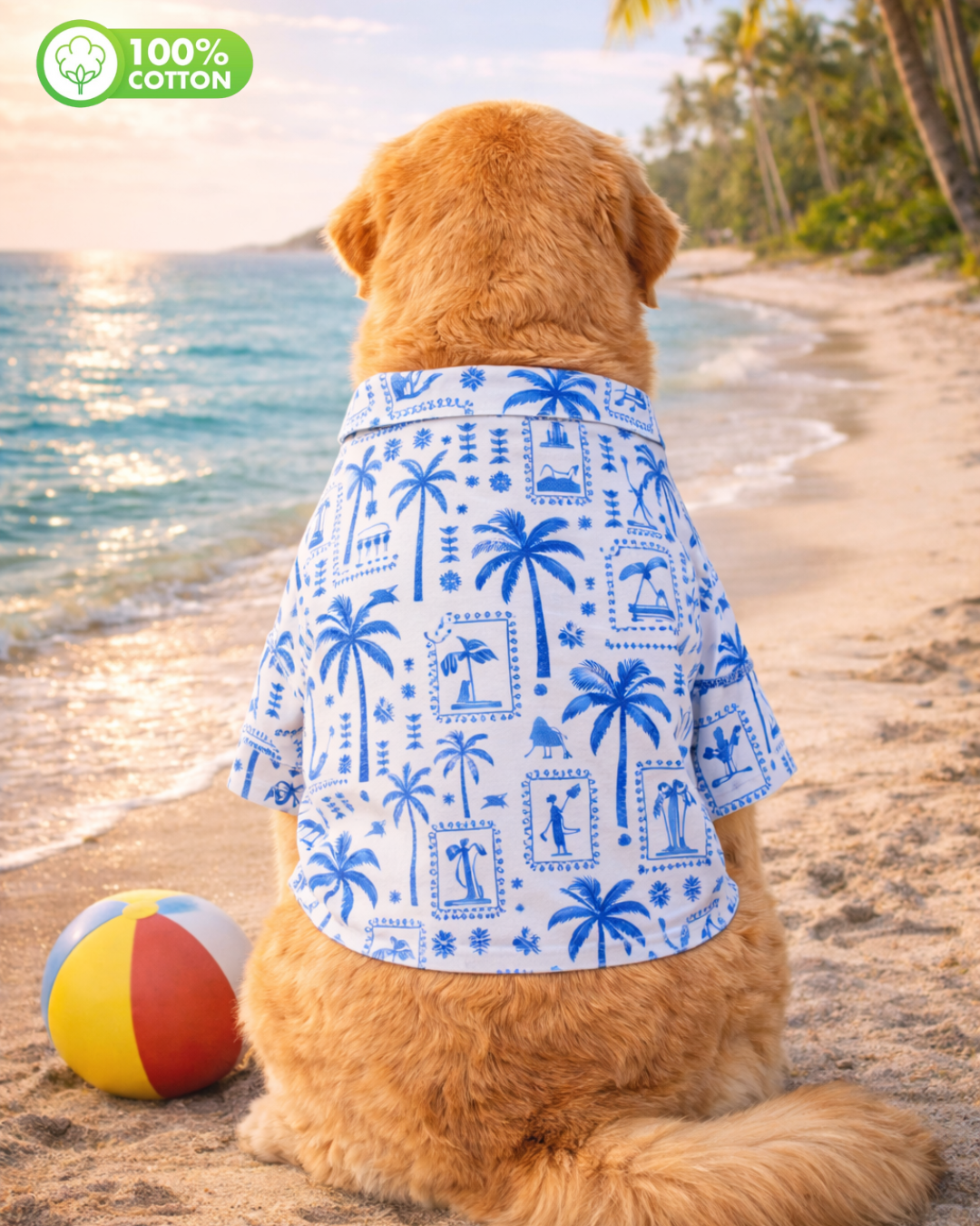 Tropical Blue Postcard Cotton Dog Shirt